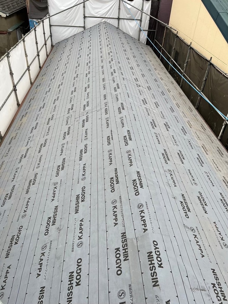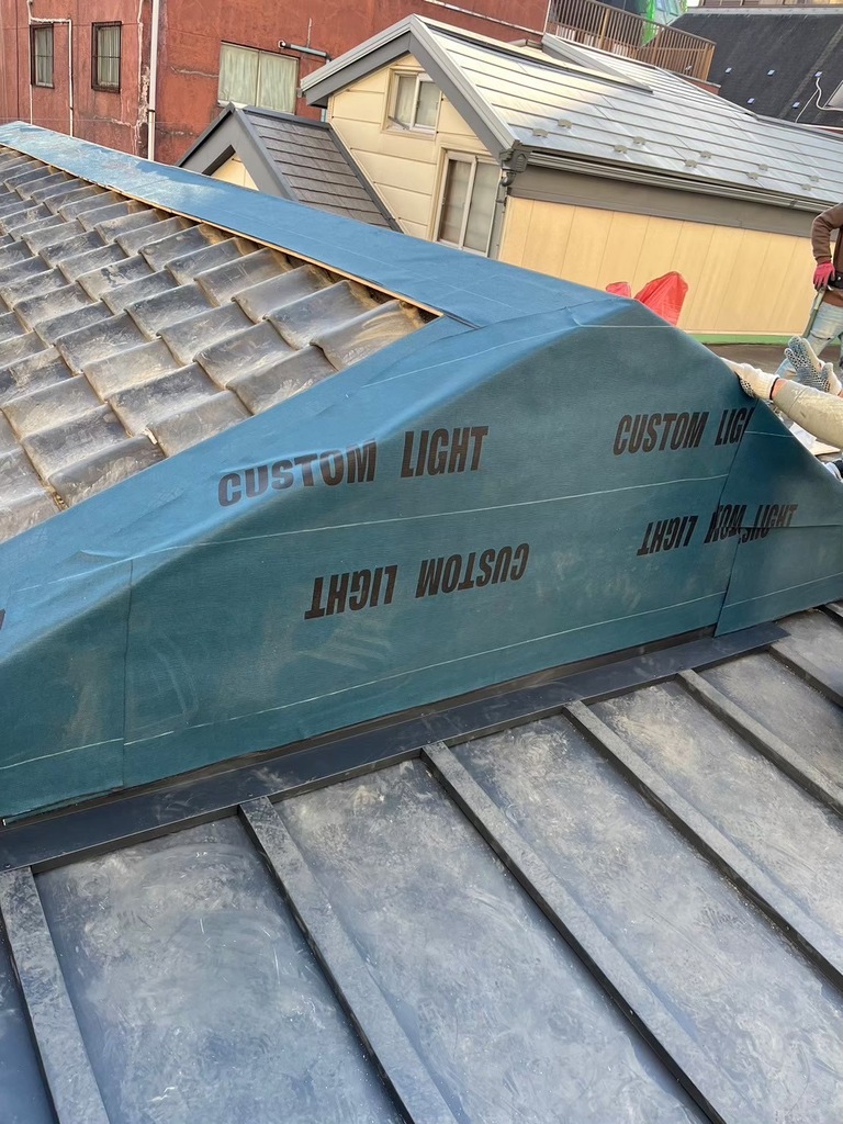 既存付属品撤去~防水シート貼り~ガルバ屋根葺き