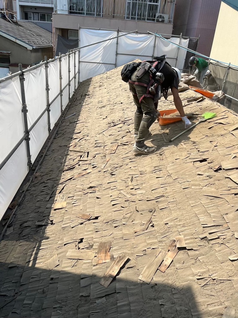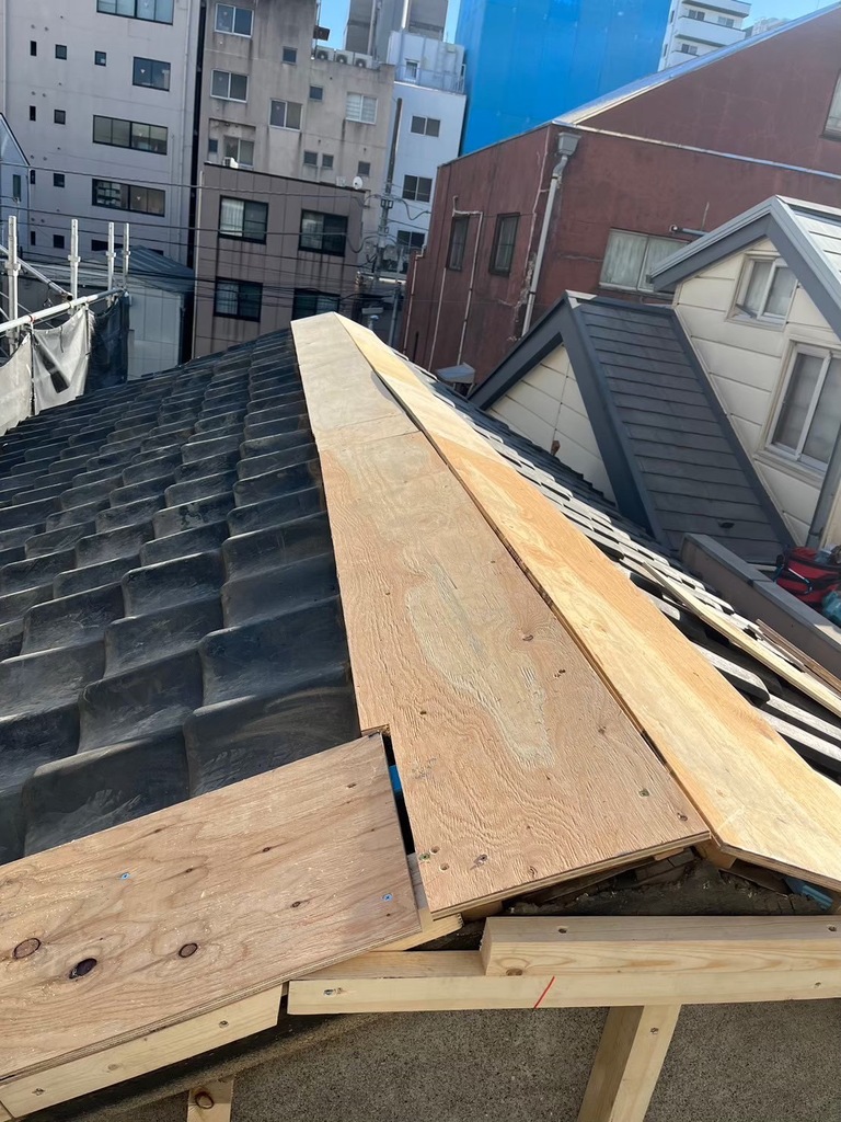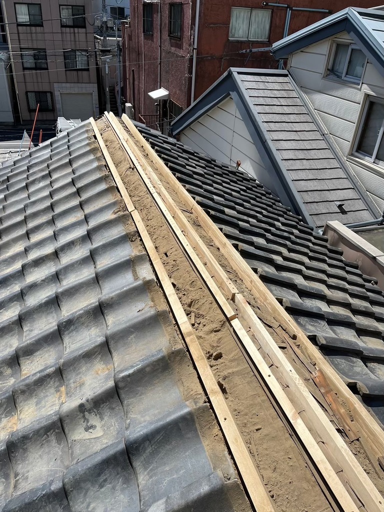 既存瓦撤去〜ホコリ清掃〜下地補強
