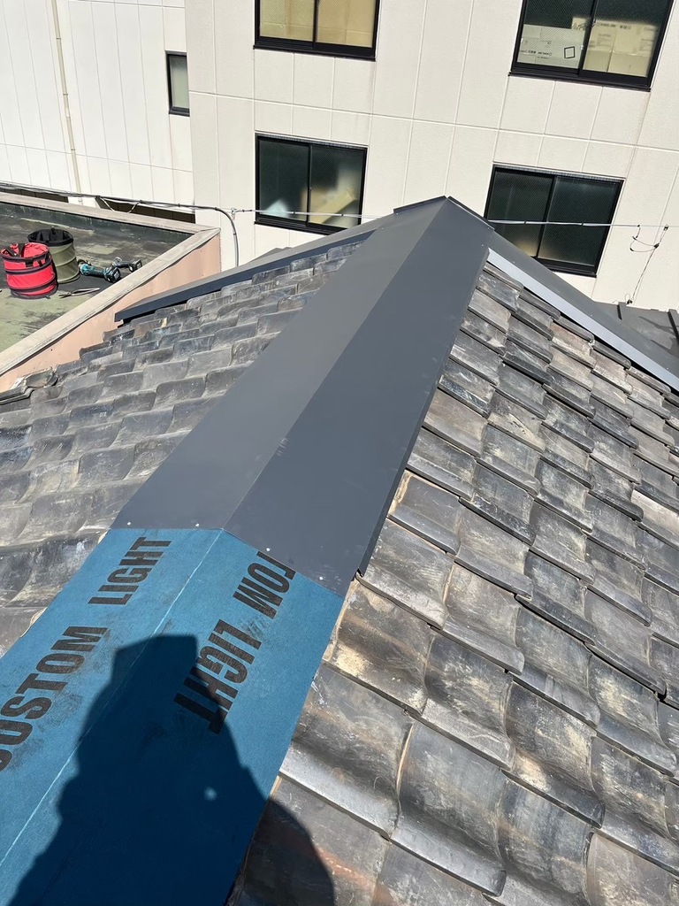 瓦棟から雨漏りしていてお客様のご予算に合わせ安価に抑えるために棟のみガルバリウム鋼板で仕上げました。